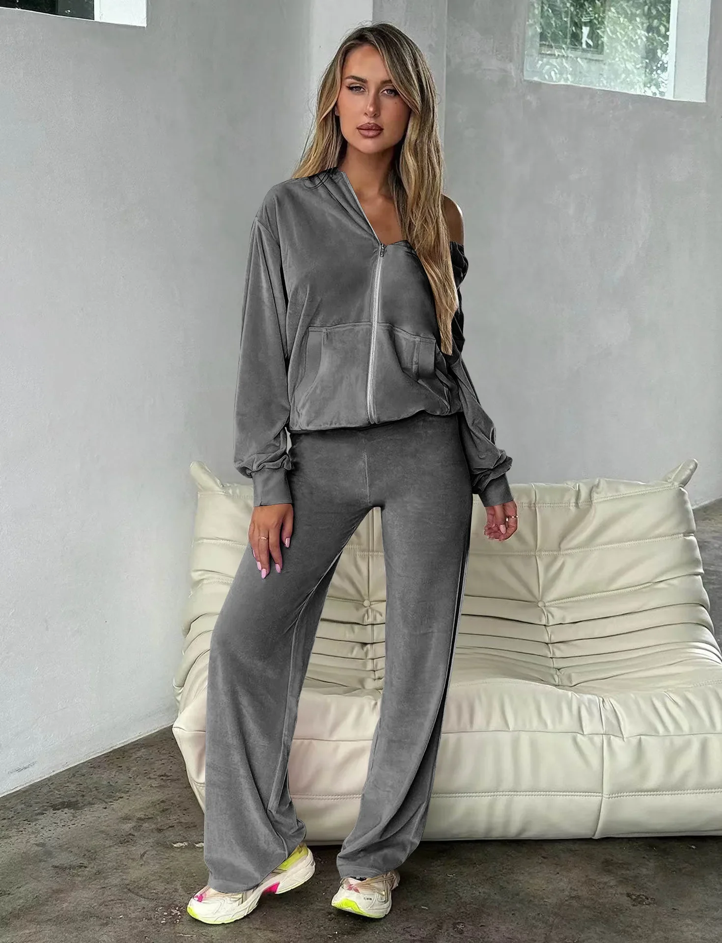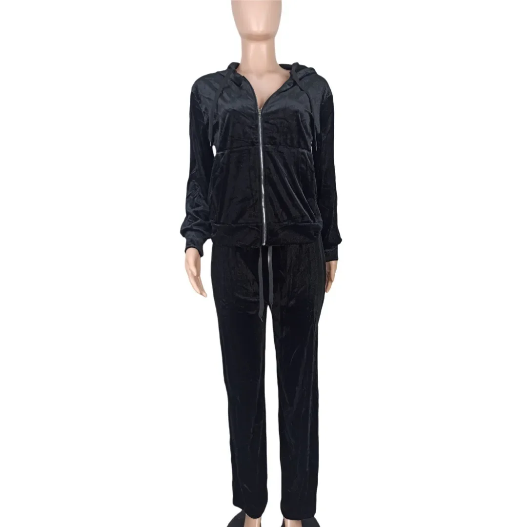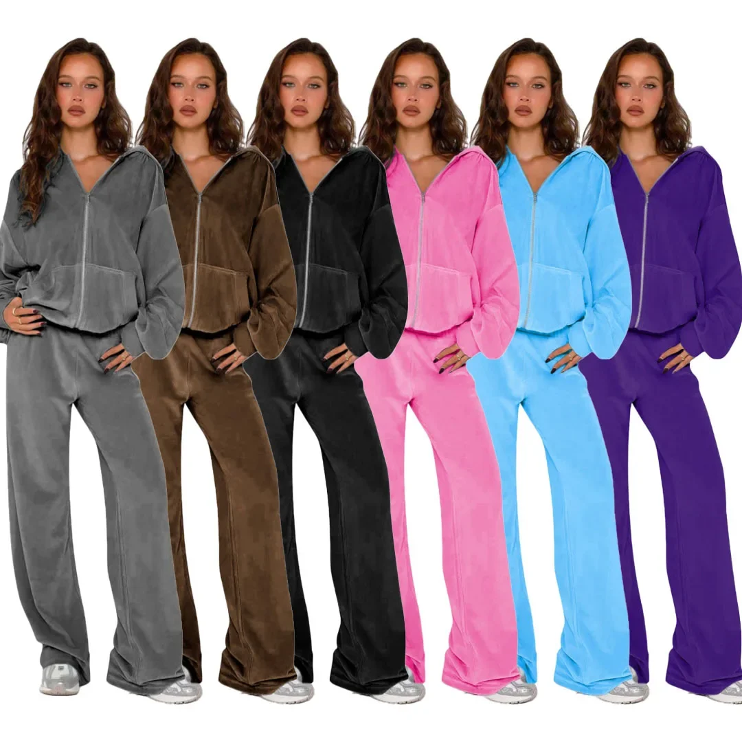 YM-018-E5 Women's Fashionable Imported Korean Velvet Hooded 2-Piece Set Elegant and Stylish Amazon New Arrival Dress