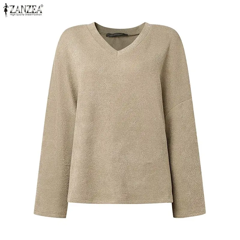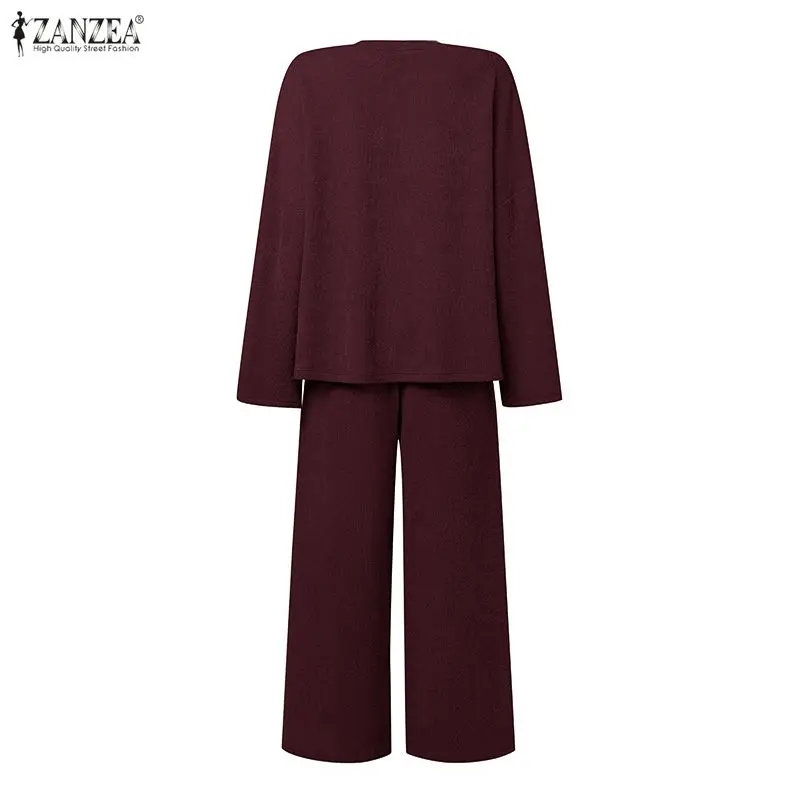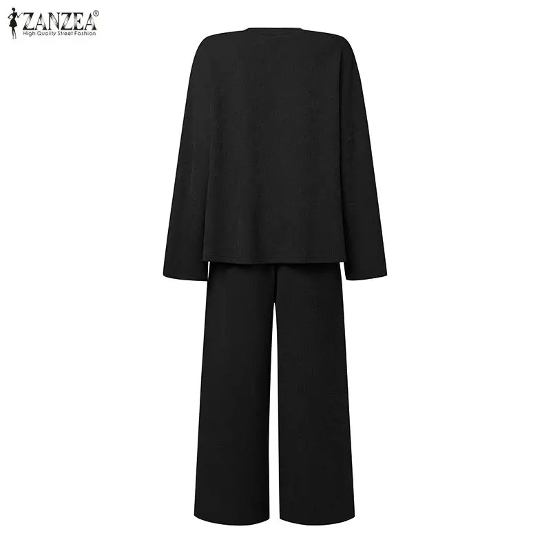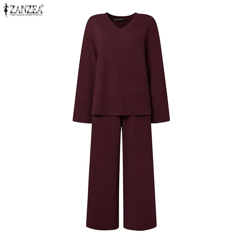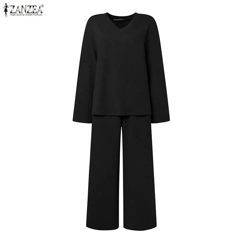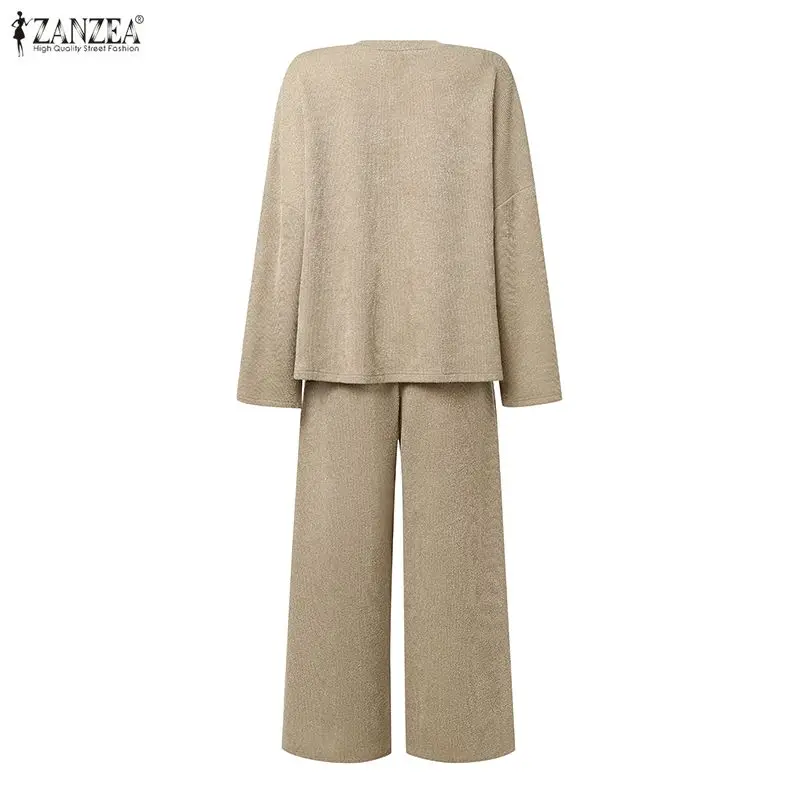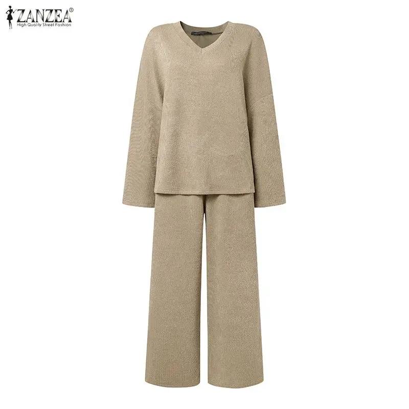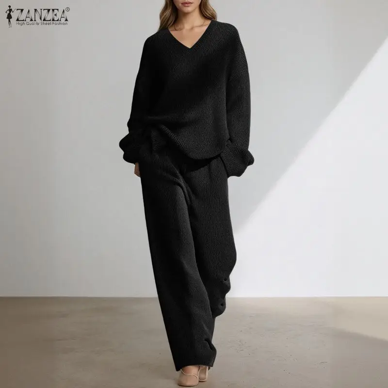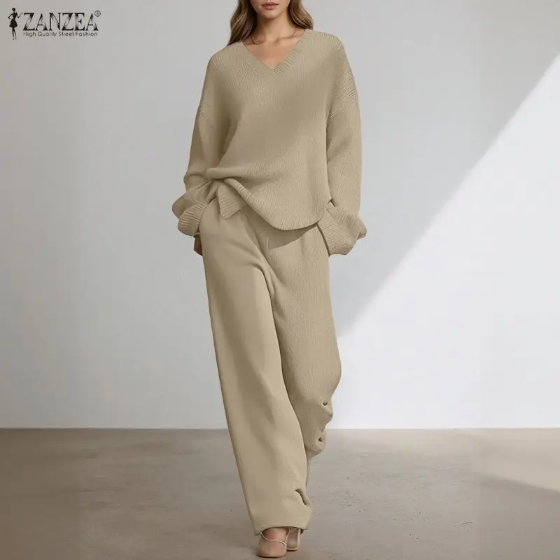 ZANZEA Elegant Pant Sets Women Long Sleeve V-Neck Pullovers Long Pants Knitted 2pcs 2025 Fashion Casual Autumn Streetwear Outfit