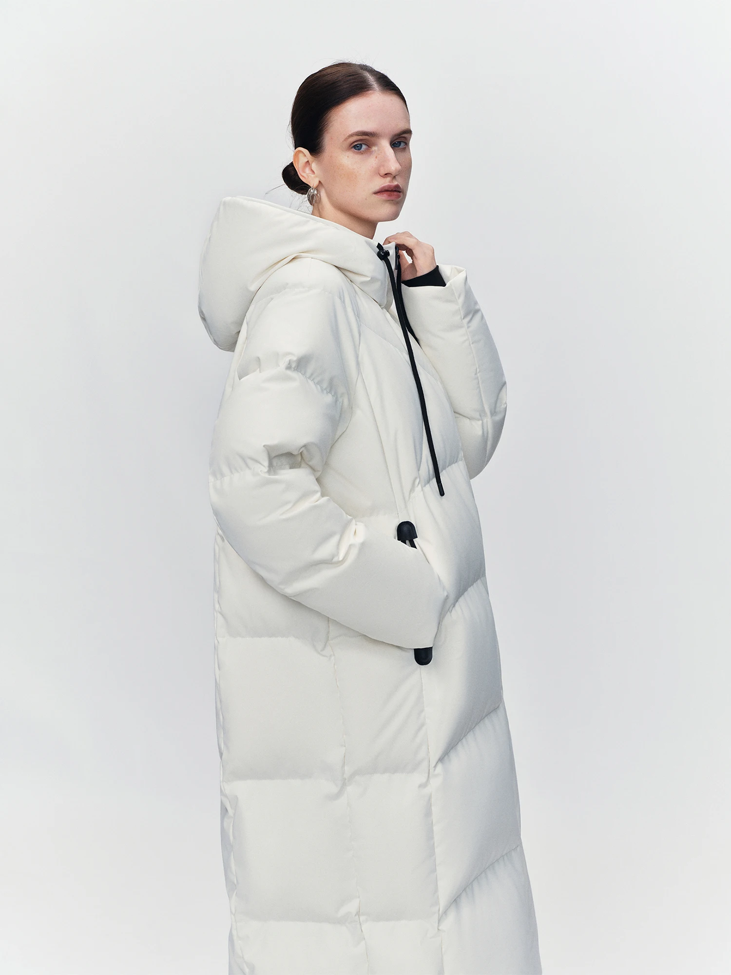 Experience warmth and a sleek silhouette with the ZIQIAO Lightwarm Down Jacket, designed for petite frames. This hooded, long white outerwear provides reliable insulation and a versatile look for everyday outdoor wear.