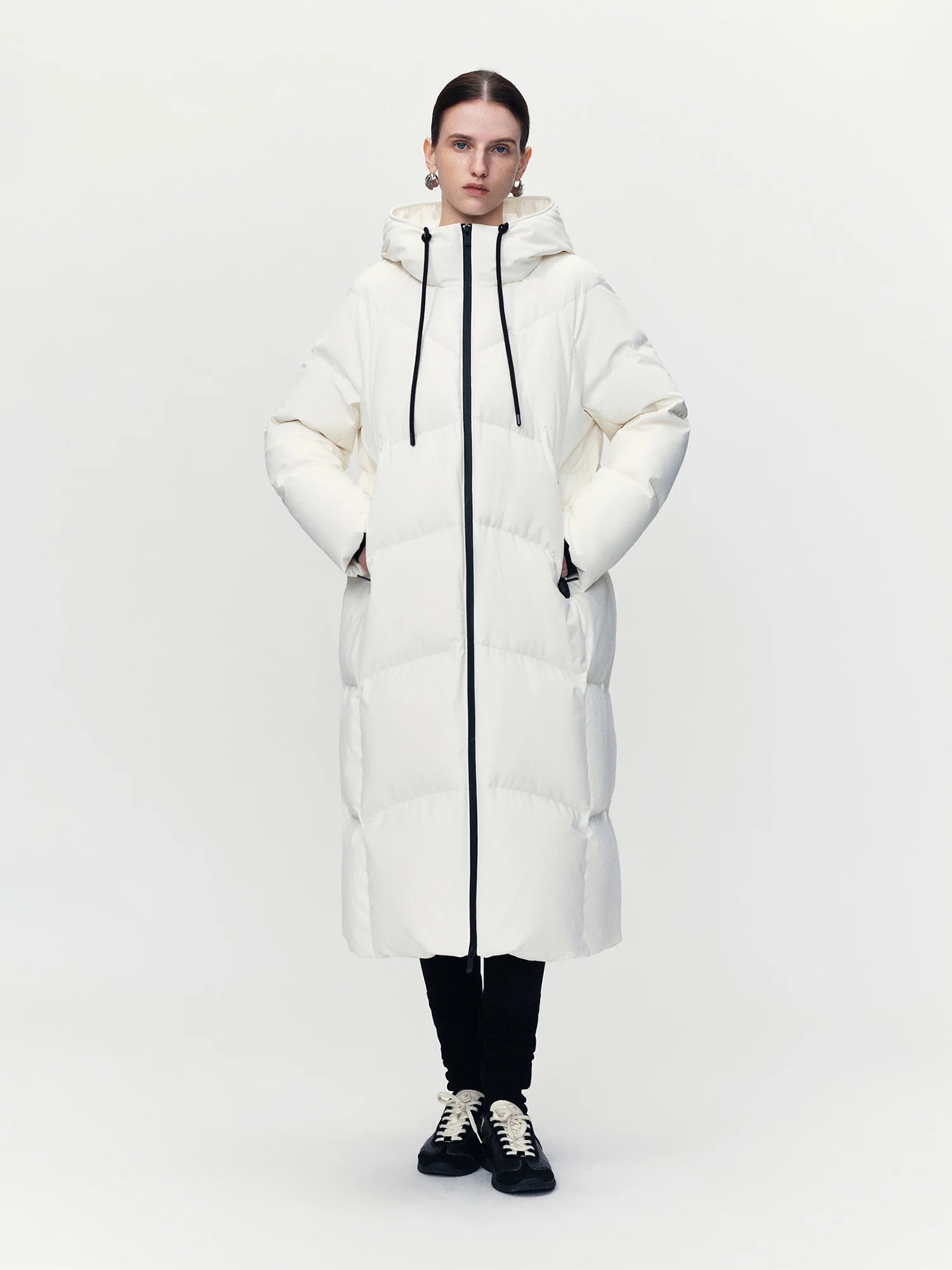ZIQIAO Lightwarm Compact Fit for Petite Women Outdoor Hooded Long White Down Jacket Women's 2025 New Arrival Outerwear Down Coat